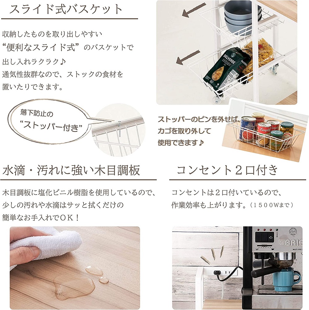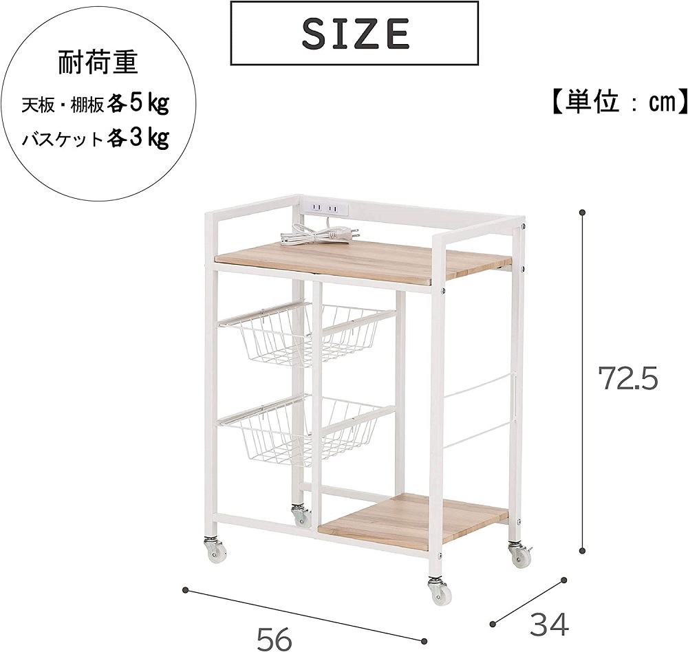 ◇ キッチン 収納 棚 アイデア 収納棚 ラック 調味料 天板 台所 作業台 収納ワゴン 収納ラック コンセント カゴ付き バスケット付き ヴィンテージ調 スペース 炊飯器置き レンジ置き 新生活 一人暮らし 北欧 リビング 多目的ラック フリーラック マルチラック マルチ収納 サイドラック サイドワゴン ツールワゴン キッチン収納棚 キッチンラック ワゴン台車 収納ボックス 省スペース 幅56 幅60 幅 56cm 高さ 72cm 奥行 34cm