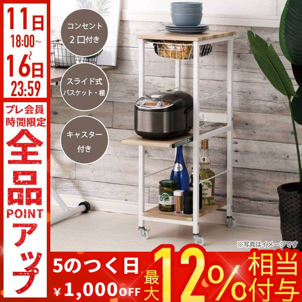 スリム 2段 3段 炊飯器 2口コンセント キッチン ワゴン ラック ナチュラル ホワイト ヴィンテージ調 木調 階層型シェルフ 天板付き コンパクト オーブンラック ラック収納 棚 アイデア 収納棚 調味料 作業台 収納ワゴン 収納ラック コンセント カゴ付き バスケット付き ヴィンテージ調 スペース 炊飯器置き レンジ置き 新生活 一人暮らし