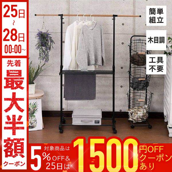 ・お洒落な木目調の伸縮可能なポールにより、デザイン性と機能性を兼ね備えた室内多機能物干しです!