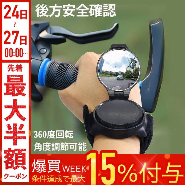 自転車 アームミラー バックミラー 軽量 リストバンド サイクルミラー 広角 手元 後方確認 広角 360度回転 角度調整可能 コンパクト