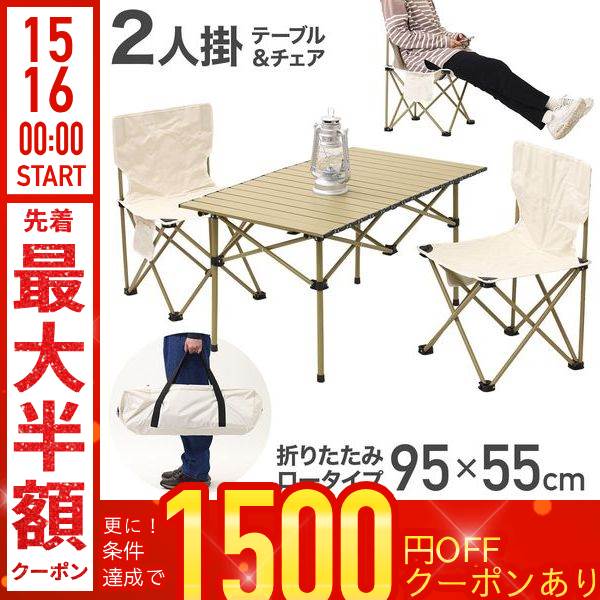折りたたみ アウトドアテーブル&チェアセット 95×55cm