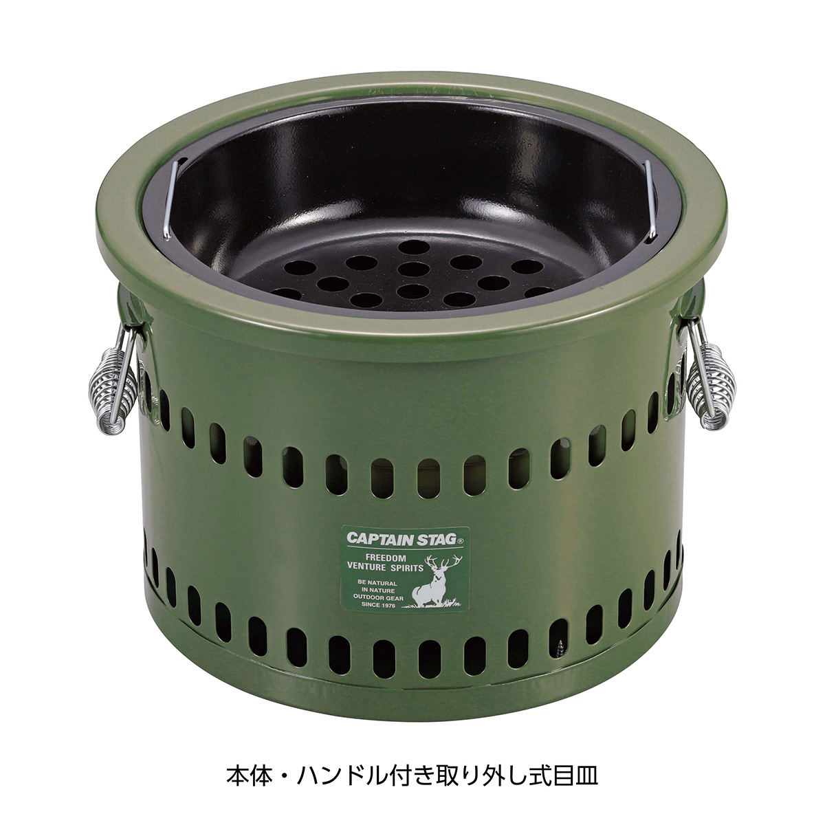 ●材質:本体:鉄(エポキシ樹脂塗装)、目皿:普通鋼板(表面加工:ほうろう)、バーベキュー網・ゴトク・ハンドル:鉄(クロムめっき)