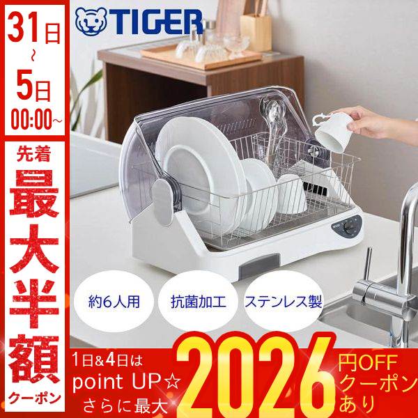 タイガー 食器乾燥機 小型 大容量 食器 乾燥 コンパクト DHG-S401WY 一人暮らし 乾燥機 熱風 熱風乾燥 抗菌 抗菌加工 ステンレス製