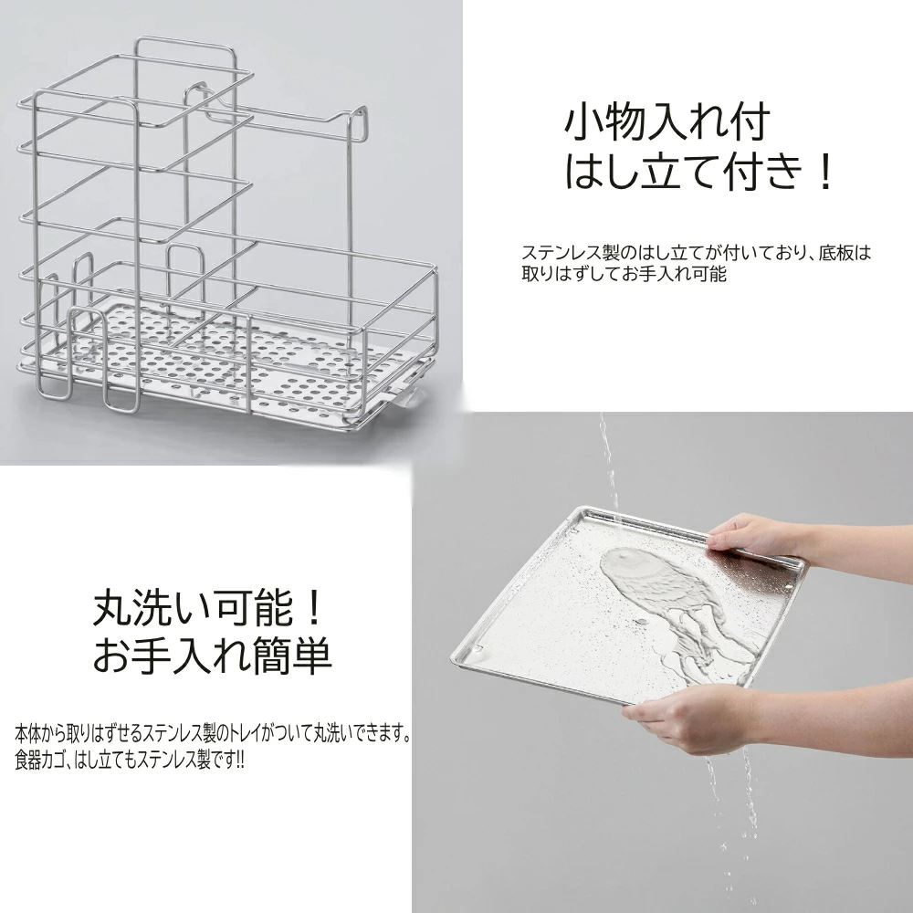 食器カゴ、はし立てもステンレス製でお手入れに便利です。