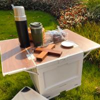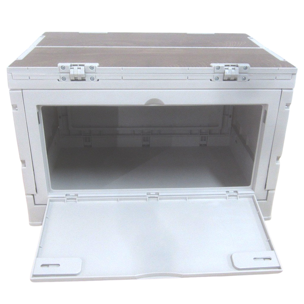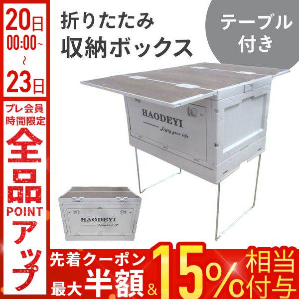 コンテナボックス 屋外 折りたたみ テーブル アウトドア 小型 収納ボックス 収納ケース キャンプ 収納 蓋付き 木目天板 折りたたみコンテナ