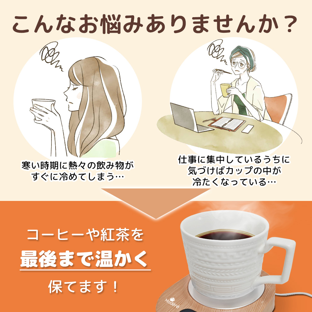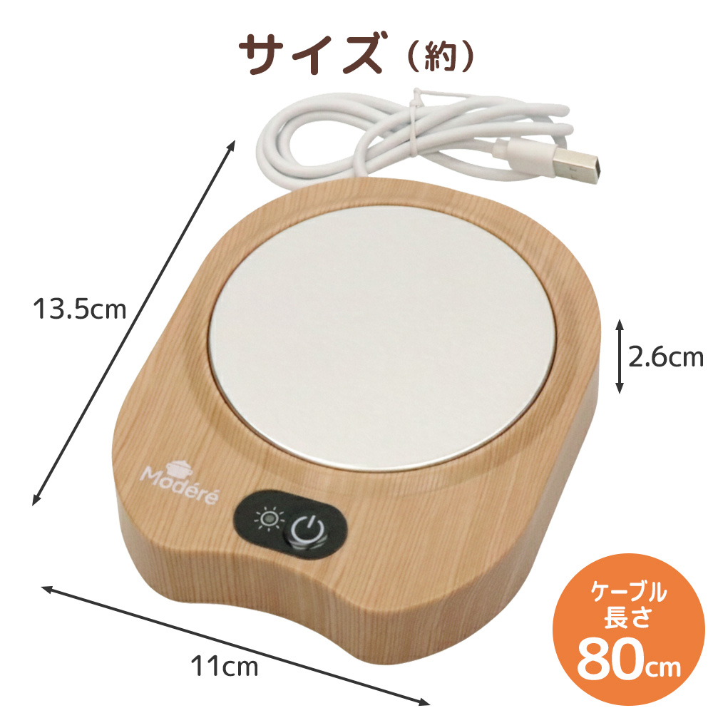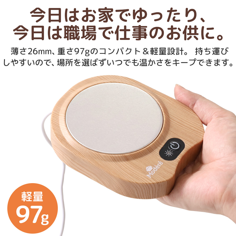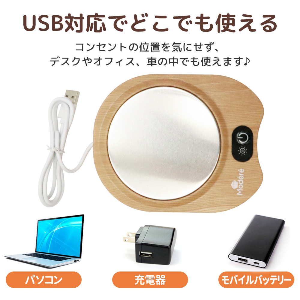 USB対応なのでオフィス、会議室、デスクなどどこででも飲み物の温かさをキープできます。