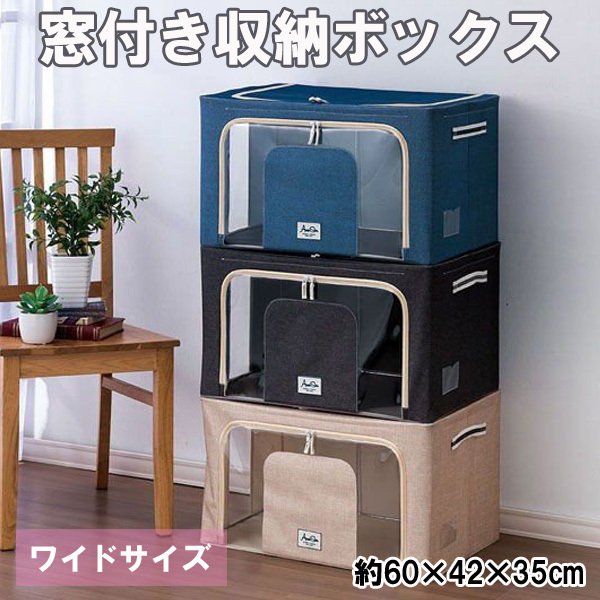 【88L】積み重ねできる窓付収納ボックスワイド【ナチュラル/ベージュ/ネイビー】