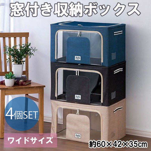 【88L】積み重ねできる窓付収納ボックスワイド【ナチュラル/ベージュ/ネイビー】