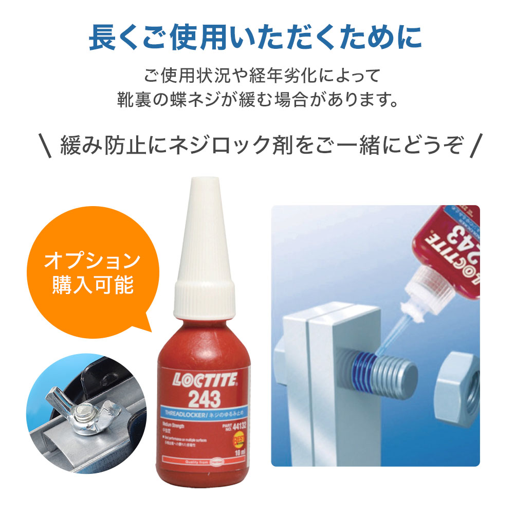 【足が成長してもずっと使える】頑丈なスチール製の本体部分は前後にスライドすることで19cm〜25cmの靴に対応。