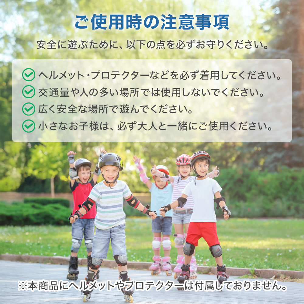 ケガ防止の為、遊ぶ時は必ずヘルメットや膝サポーターなどを着用してください。