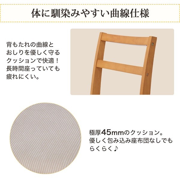 ●フレームは天然木(ラバーウッド)を使用しており、風合いが豊かなチェア
