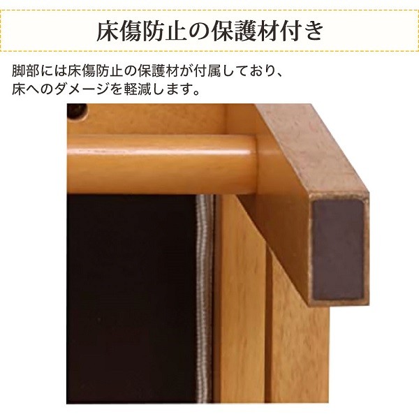 脚部には床傷防止の保護材が付属しており、床へのダメージを軽減します。