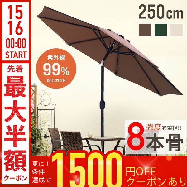 ガーデンパラソル 大型 250cm 8本骨 庭 パラソル 折りたたみ ガーデン 風に強い おしゃれ ベランダ 日よけ 回転 撥水 ビーチパラソル シェード