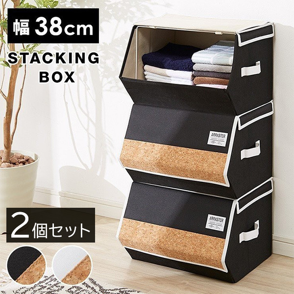 収納ボックス フタ付き 2個セット スタッキング おしゃれ カラーボックス 収納 2段 38cm コルク 収納ケース 前開き 折りたたみ 布 北欧 インテリア 衣類収納