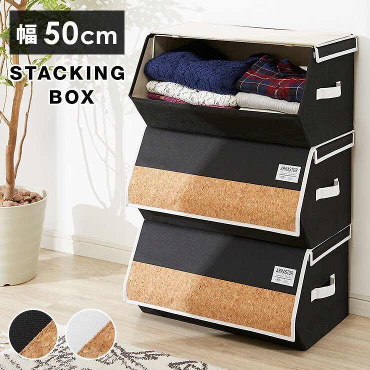 スタッキング(重ねて)したまま前から収納できる、コルクがおしゃれなスタッキングボックスです。