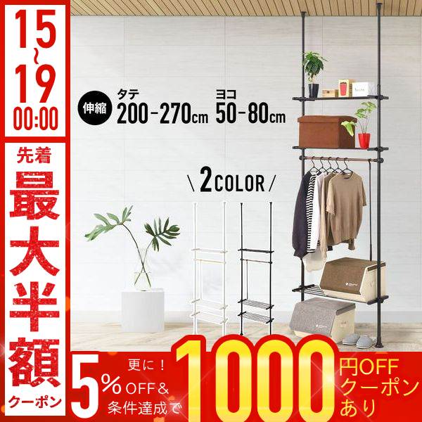 棚付き突っ張りデザインハンガーラック