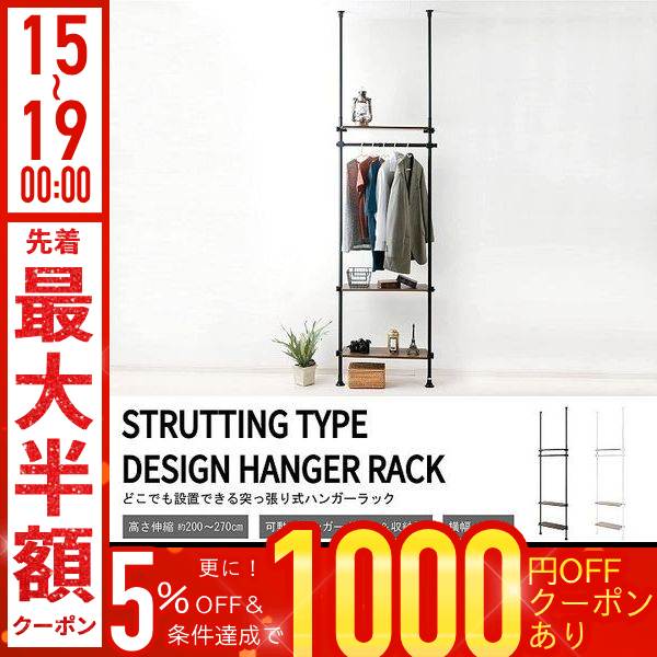 突っ張りハンガーラック 棚 収納 棚付き おしゃれ 突っ張りラック つっぱり ラック つっぱり棚 突っ張りハンガーラック 天井突っ張り式 ブラック ホワイト