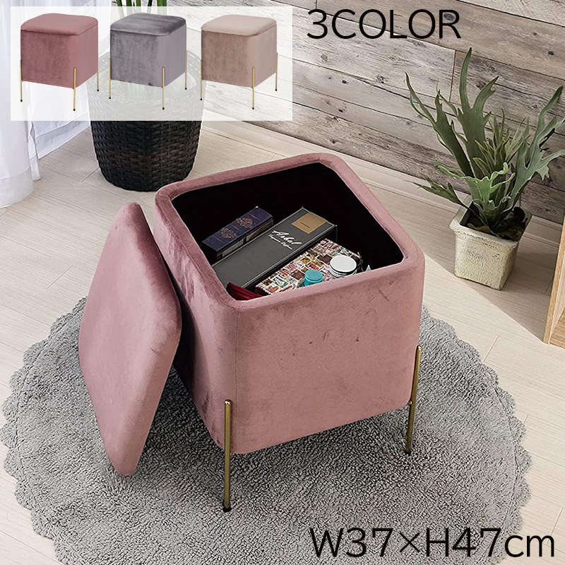 脚付き収納スツール【37×37×47cm】