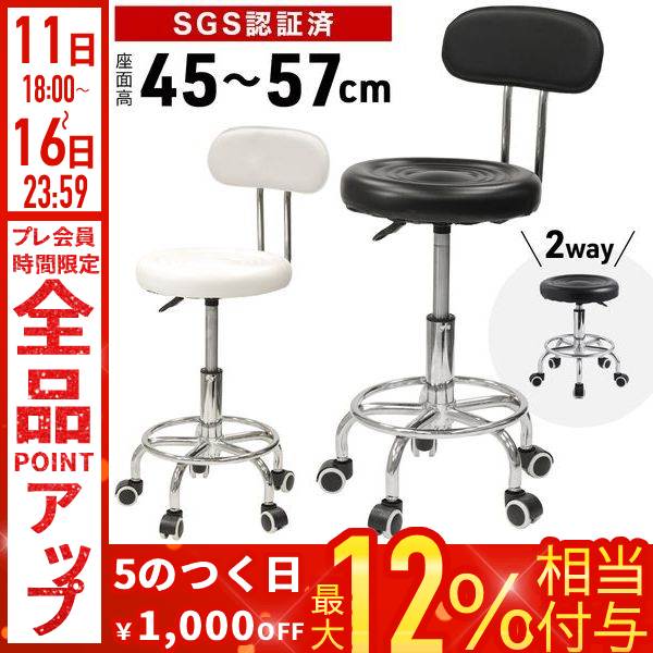 キャスター付カウンターチェア 【ブラック/ホワイト】