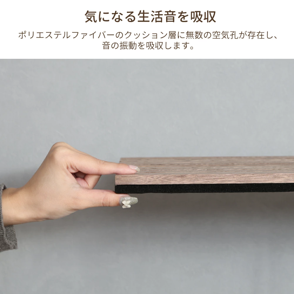 細かな空気孔が音の振動を吸収し、生活音や反響音をやわらげます。