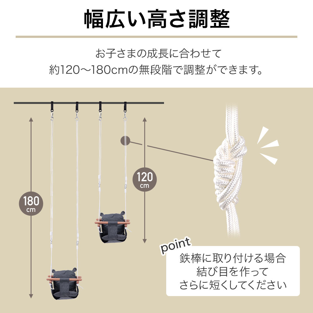 別売りの鉄棒に取り付けるだけで、いつでも自分だけのブランコに♪