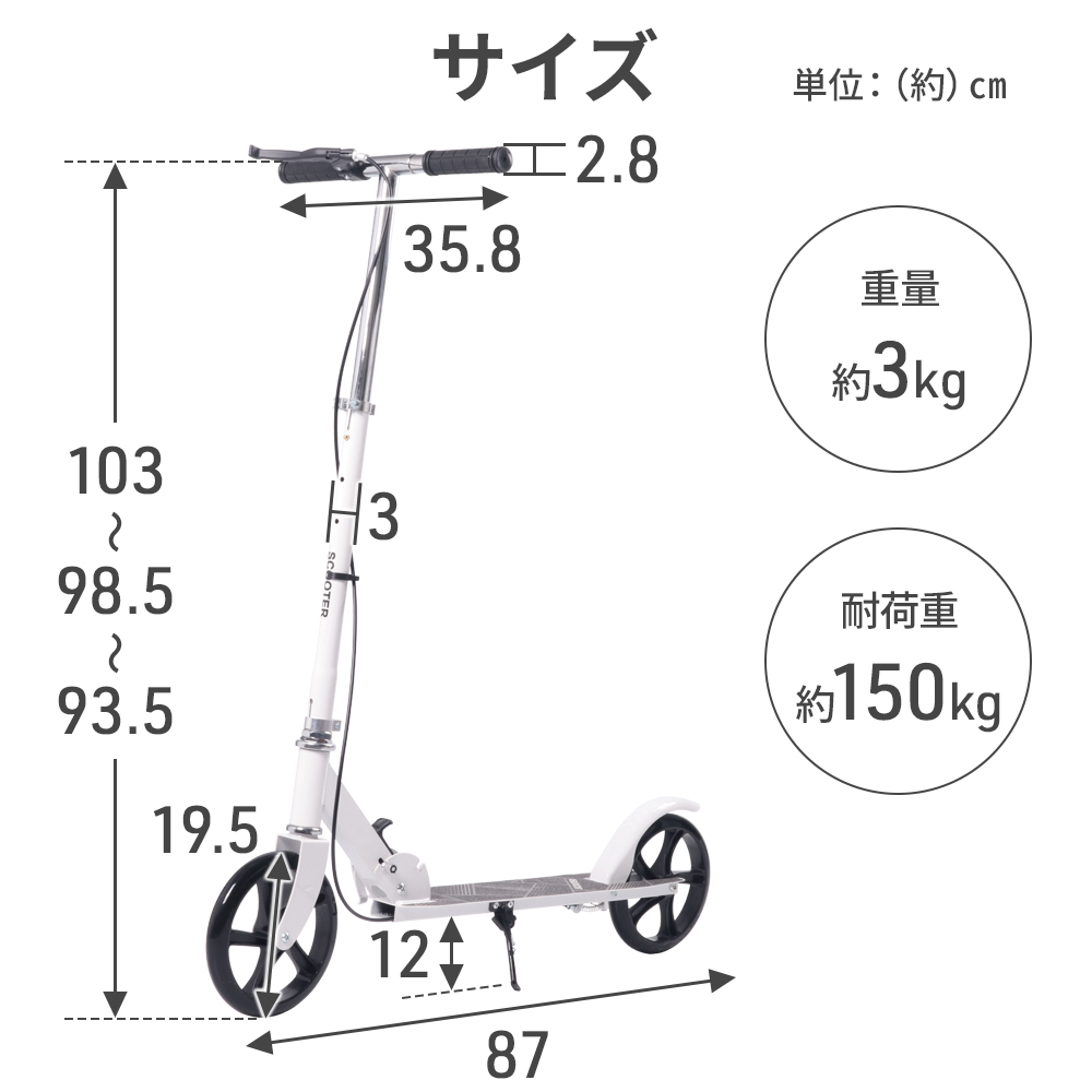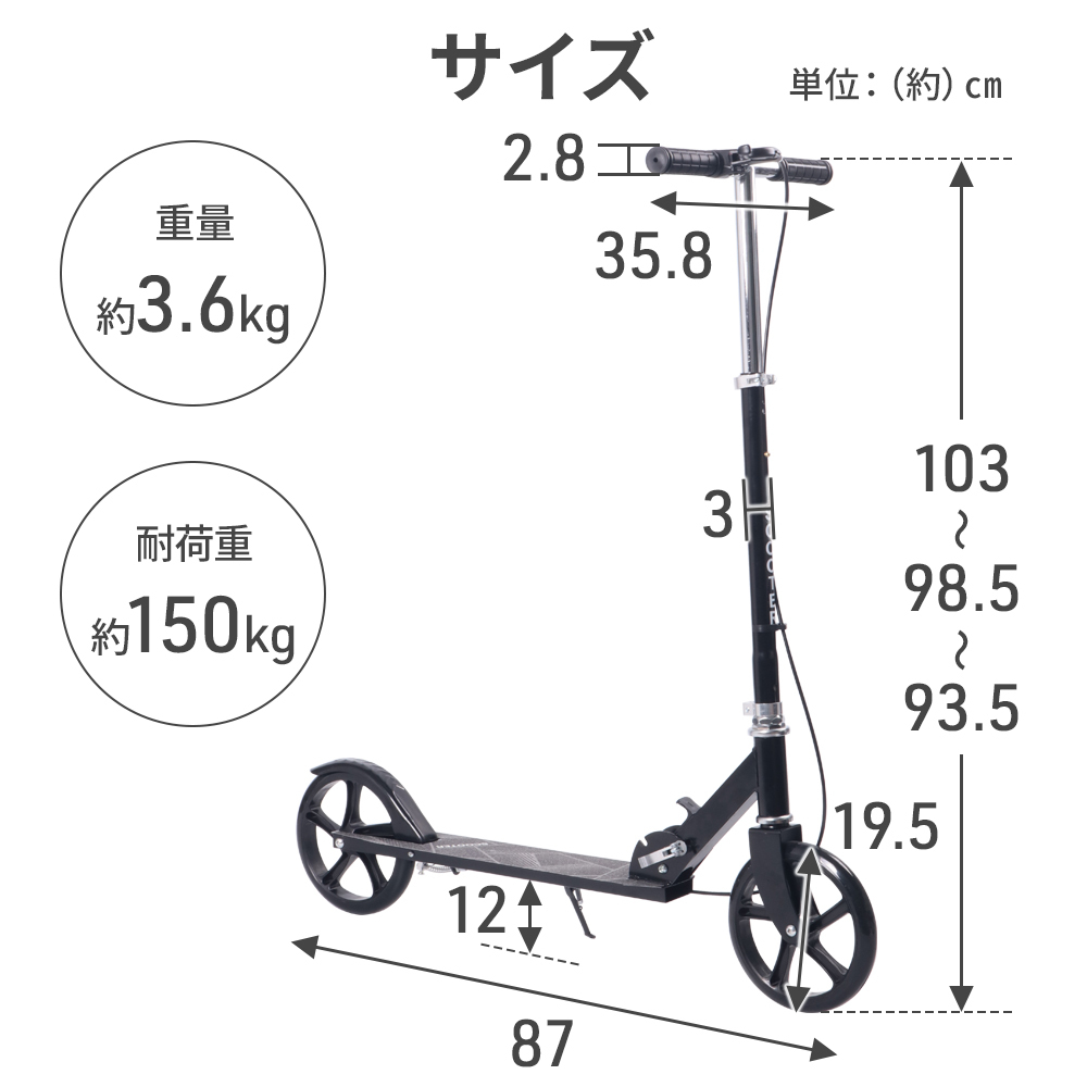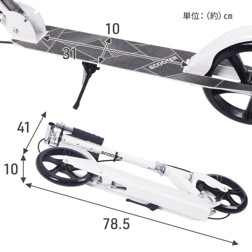 キックボード ブラック ホワイト◆置き場所に困らない&持ち運びに便利な「折りたたみ式」