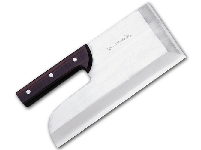 品質にこだわり抜くプロ仕様の本格的な蕎麦包丁。鋭い切れ味とサビに強い安来銀三鋼を熟練の技で鍛造した逸品です。柄には重厚感のある黒丹を使用しています。