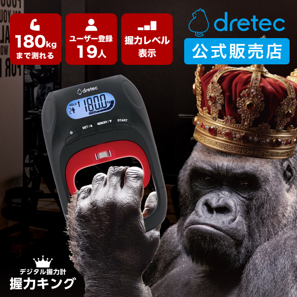 ドリテック 公式 握力計 デジタル レベル表示 180Kgまで測定 バックライト 男性 女性 筋肉 筋トレ ジム 部活 スポーツ チーム 家族 握力キング HD-100BK