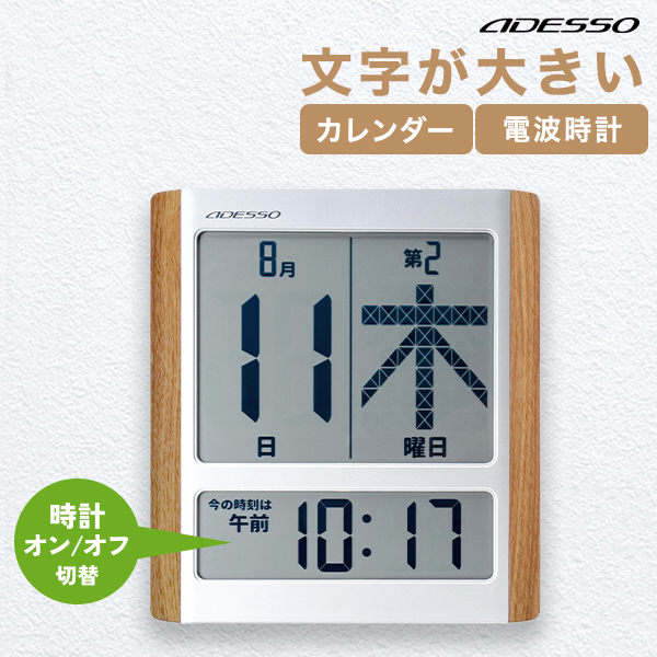| 機能 | 電波時計、日付表示、曜日表示、第曜日表示、12/24時間制表示、時間帯表示(午前・午後のみにも切替可能)、時刻表示オフ、電池切れ注意アイコン、置掛兼用 |
