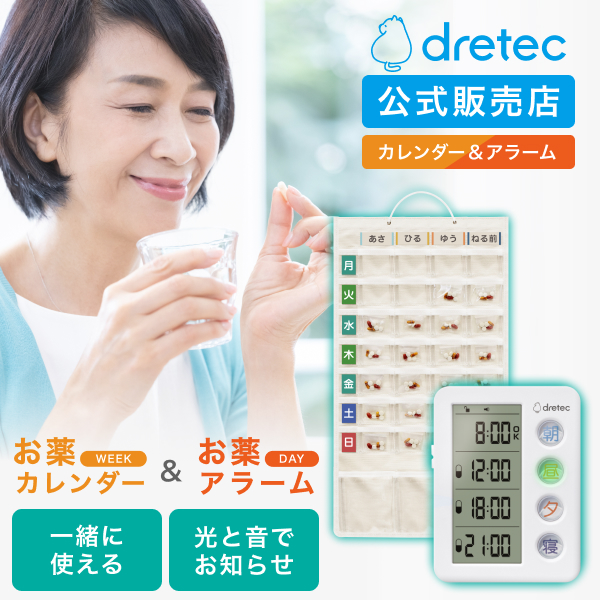 【セットがお得】 ドリテック 公式 お薬タイマー&お薬カレンダーセット 服薬管理 1日4回 カレンダー 1ヶ月 1週間 薬 飲み忘れ防止 タイマー 光 音 大音量 無音