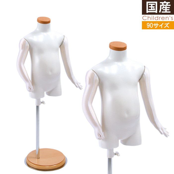 キッズ 子供 マネキン トルソー 90cm ホワイト 5本指 木製台 SC820U-1W90