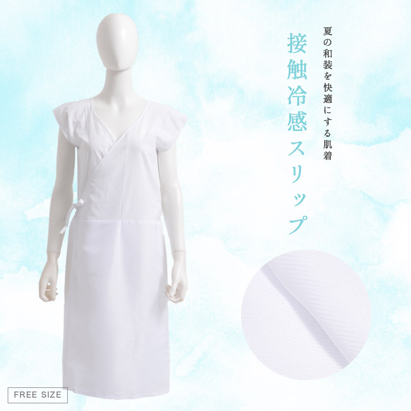スカート部分は接触冷感でさらにひんやり快適な浴衣姿に。