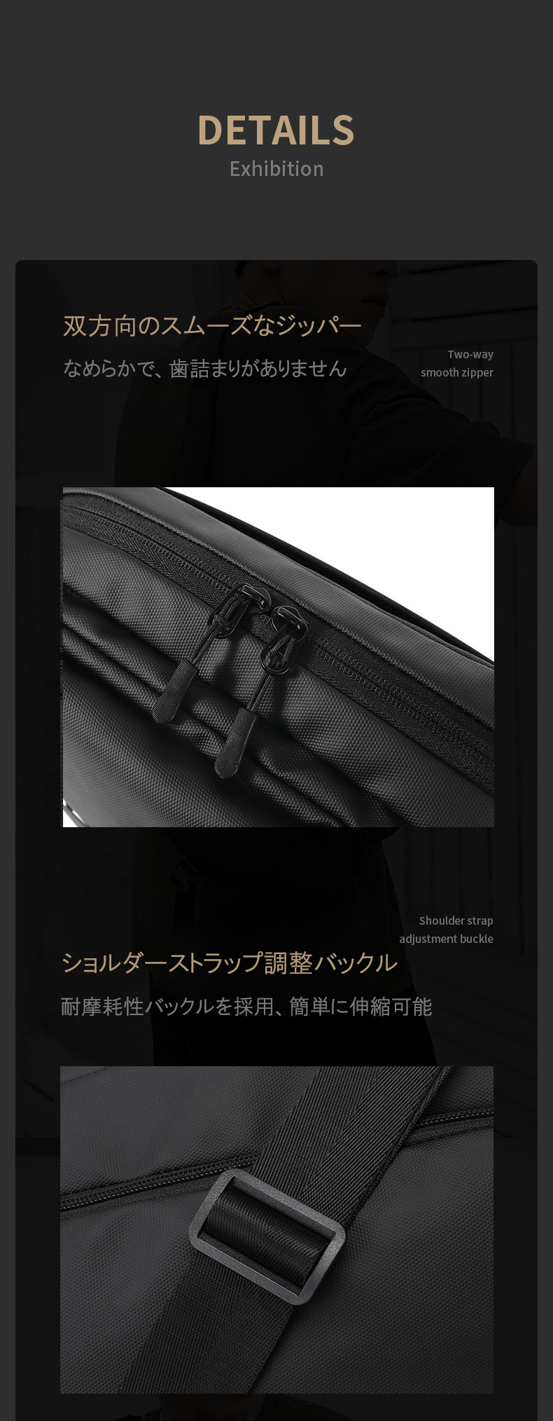 素材は耐久性と撥水性に優れ、雨の日でも中身を守る信頼の品質。