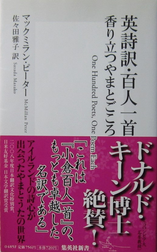 英詩訳・百人一首 香り立つやまとごころ マックミラン・ピーター著 佐々田 雅子訳(集英社新書)