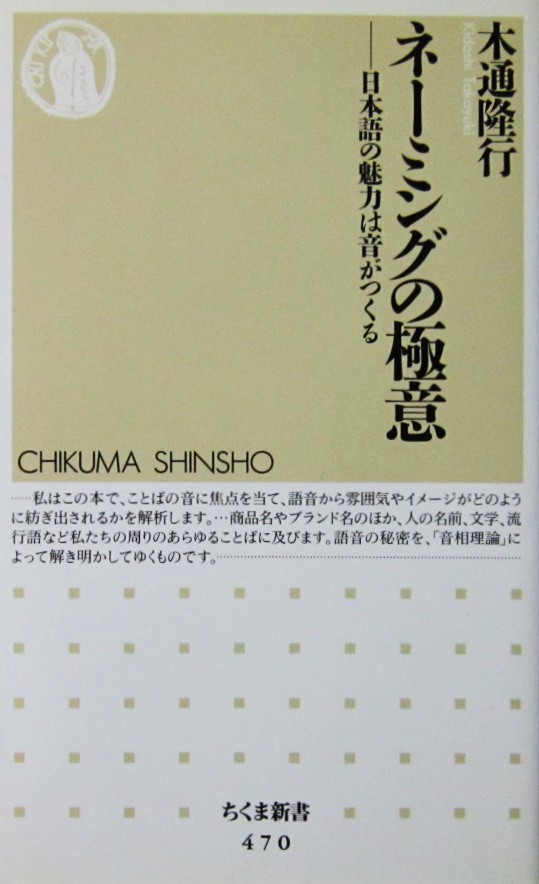 ネーミングの極意 日本語の魅力は音がつくる 木通 隆行著(ちくま新書)