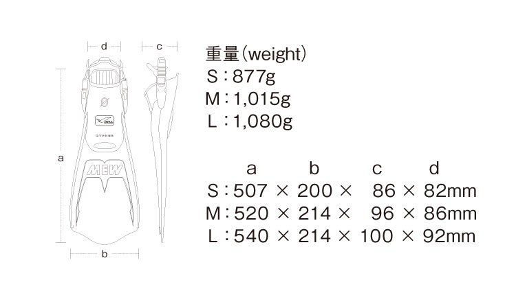 ≪この フィン について≫ GULL ガル ダイビング用フィン GF-2335B ■機能 ・水中を軽快に駆けまわる、ミドルレンジストラップフィン フィンワークをするたびに実感できる、水中を自由に駆けまわる爽快感がたまらないストラップフィン、ミューサイファー。 初心者ダイバーが軽快に使用できるようにミューをストラップフィンにアレンジ。 ブレード長を短く、硬度を柔らかめに設定したことで、楽なフィンキックを実現させました。 また、のんびり潜るスクーバダイビングや、スキンダイビングにも最適です。 ■仕様 ・包み込むポケット構造 アキレス腱部に着いたベルトをしめて足に装着するタイプのフィンはフィット感がフルフットフィンに劣りますが、 ソールを長く甲を高くし、ブーツのつま先部分も横滑りしにくい構造にすることでまるでフルフットのような履き心地を実現しました。 ・スーパーグリップシステム 前後左右の加重に対しても、新ブロックパターン採用に よりグリップ力を向上。 ・先端形状(突起タイプ) 先端を突起させる形状を採用し、強く蹴り込んだ際もしっかりと水を捉え推進力へ繋げます。 |