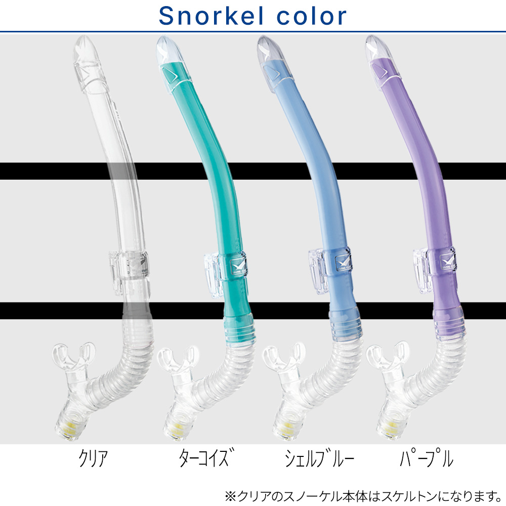 | 【mantis5-leilastable】 ■マスク:GULL MANTIS5(マンティス5) クリアシリコン 【特長】 ・50年以上にわたりダイバーに愛され続けるスタンダードモデル ・スーパークリアレンズで光の透過率を高め、明瞭な視界を実現 ・ドレーニングスカート設計によりマスククリア時の排水性を向上 【素材】シリコン(クリアシリコン) / テンパードガラス 【シリコンの特長】 クリアシリコンは光を多く取り込み、明るい視界を確保できるのが特長。水中で表情が見えやすく、アイコンタクトも取りやすいため、初心者や女性ダイバーから特に人気があります。 ■スノーケル:GULL LEILA STABLE(レイラ ステイブル)クリアシリコン 【特長】 ・大型排水室を搭載し、スノーケルクリア後も気道を確保して逆流を防止 ・ドライアッパーとスタビライザーパイプで安定した呼吸と快適な水面移動をサポート ・交換式マウスピースを採用し、長期間衛生的に使用可能な女性専用モデル 【素材】TPR / シリコン(クリアシリコン) 【全長】409mm 【内容量】158cc 【重量】125g 【サイズ】 パイプ内径 18φ / マウスピースサイズ 47mm |