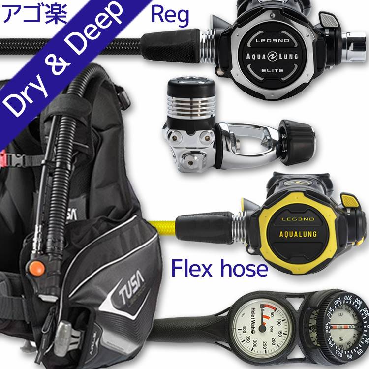 | ダイビング中に感じる顎の疲れを軽減するために 専門店スタッフが厳選したアイテムのセット。 スイベル仕様のレギュレーターや、フレックスホースを使用したものなど 様々なダイバーのストレスを軽減する 重器材セットです。 | |