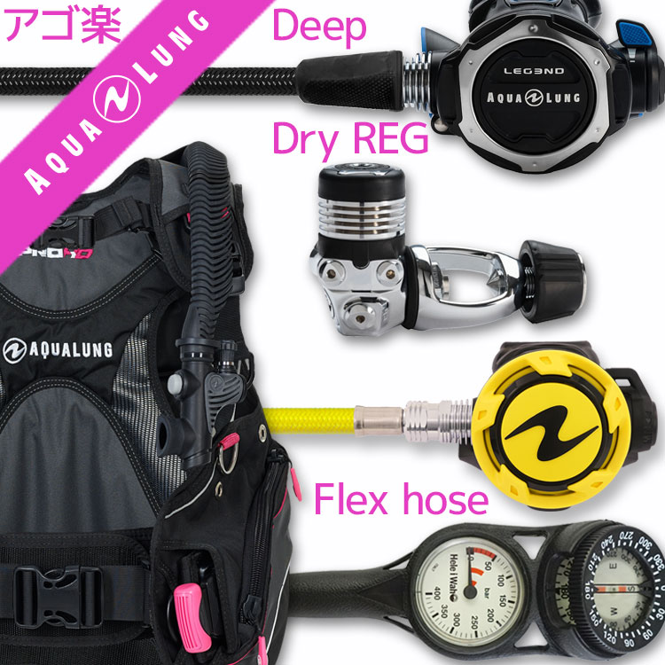 | ダイビング中に感じる顎の疲れを軽減するために 専門店スタッフが厳選したアイテムのセット。 スイベル仕様のレギュレーターや、フレックスホースを使用したものなど 様々なダイバーのストレスを軽減する 重器材セットです。 | |