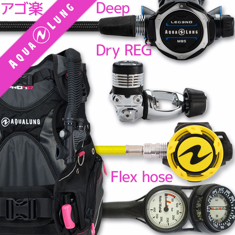 | ダイビング中に感じる顎の疲れを軽減するために 専門店スタッフが厳選したアイテムのセット。 スイベル仕様のレギュレーターや、フレックスホースを使用したものなど 様々なダイバーのストレスを軽減する 重器材セットです。 | |