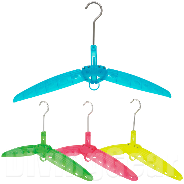 折りたたんだままネック部分からスーツの中にハンガーを入れてセットが可能なのでウェットスーツはもちろん、硬いファスナーが面倒なドライスーツも簡単に干す事が出来ます!