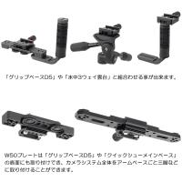 W50プレートは「グリップベースD5」や「クイックシューメインベース」の底面にも取り付けでき、カメラシステム全体をアームベースごと三脚などに取付ける事が出来ます。