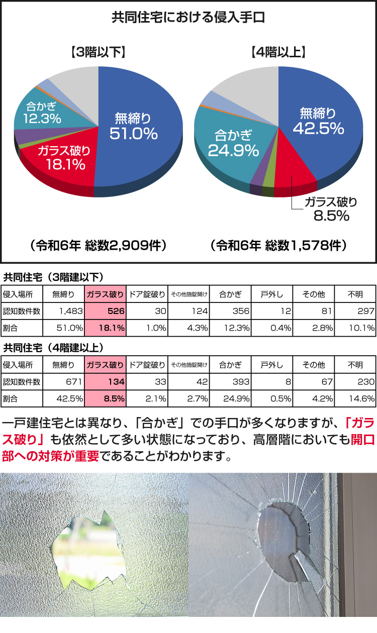 ・窓ガラスの打ち破り、こじ破り、焼き破りなどの対策