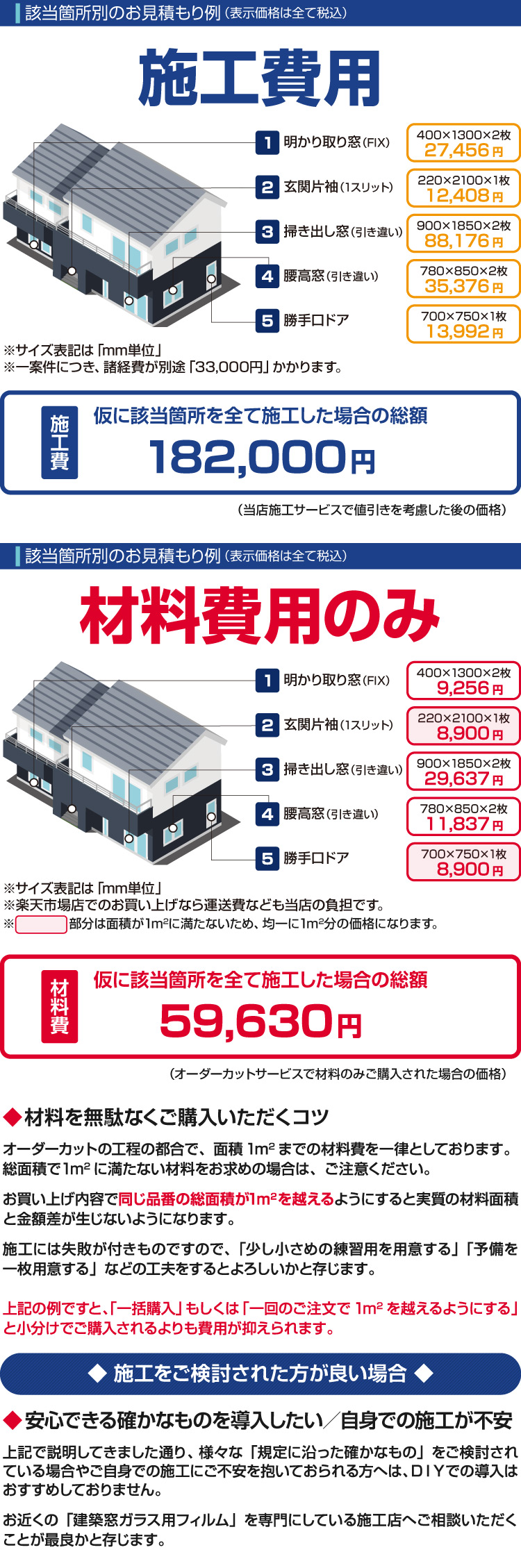 必要なフィルムの「面積値」をショップの「個数」へ換算しています。(1個 = 0.1平米)