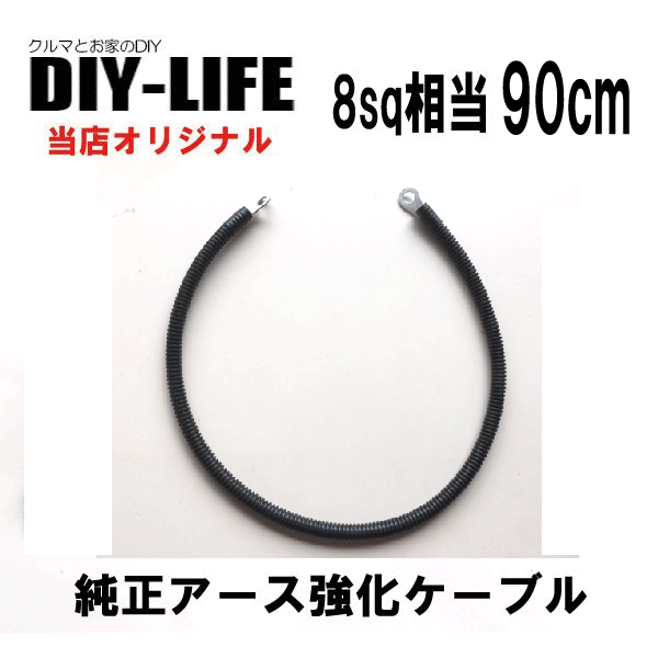 純正アース強化ケーブル 太線8sq 90cm OFCケーブル使用!ボンネット内にバッテリーがある車の純正ボディアース強化に