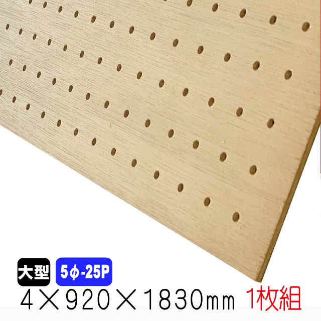 ラワン有孔ボード(無塗装) 4mm×920mm×1830mm(5φ-25P/A品) 1枚組 穴あきボード パンチングボード DIY diy ペグボード