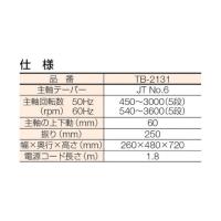 ・正確な穴あけが可能です。 ・金属・非金属から、木材、プラスチックなどへ安定した穴あけが可能です。 ・木材、金属類などの穴あけに。 仕様 穴あけ能力:木工 24mm、鉄工 13mm チャック能力:1.5〜13mm 電源:単相100V 定格出力:190W 回転数(50Hz):450・730・1330・2170・3000min-1 回転数(60Hz):540・880・1600・2610・3600min-1 フトコロ寸法:125mm 送り寸法:60mm テーブル寸法:角型 幅196×奥行213mm 質量:34kg サイズ:幅260×奥行480×高さ720mm 旧リョービ 旧RYOBI 【付属品】 チャックハンドル 、バイス 、六角棒レンチ(4mm、3mm各1本) 【入数】 1台 【原産国】 中国 TB2131