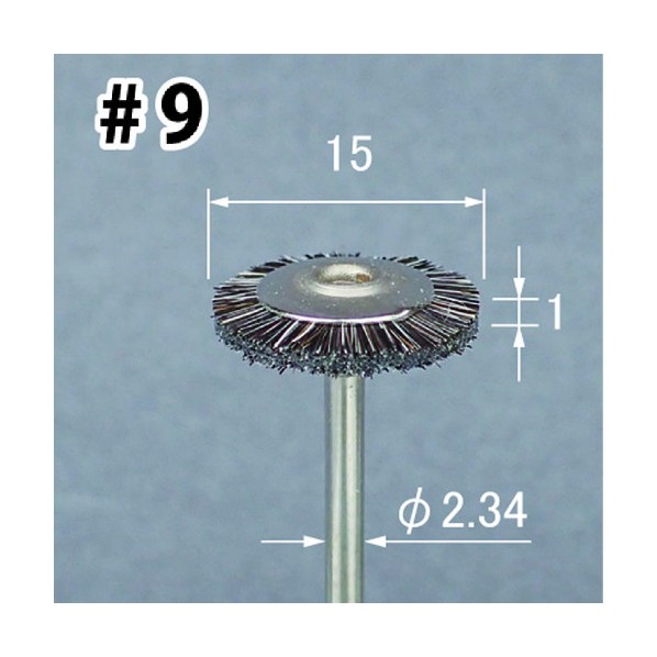 ■特徴 コシが強く粘ります。 ■用途 各種研磨に。 ■仕様 毛材:馬毛 軸径:2.34mm 直径:15mm(#9) 【入数】 12本 BRB2009