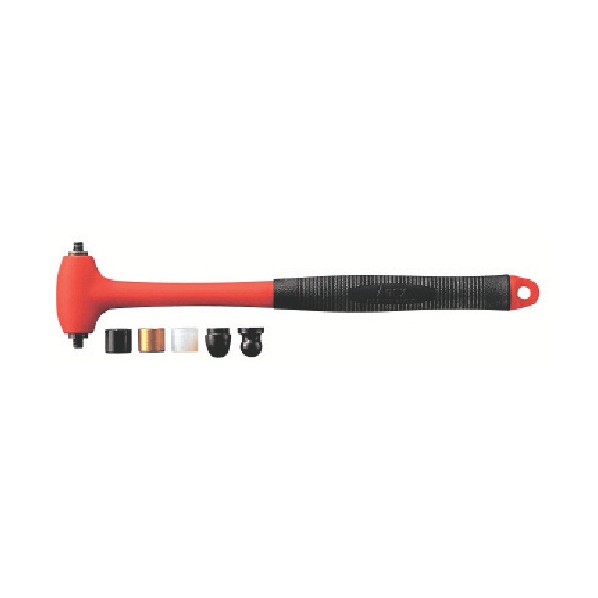 鉄平・鉄丸・鉄長丸・ナイロン・真鍮の5種のヘッドがセットになったミニハンマーです