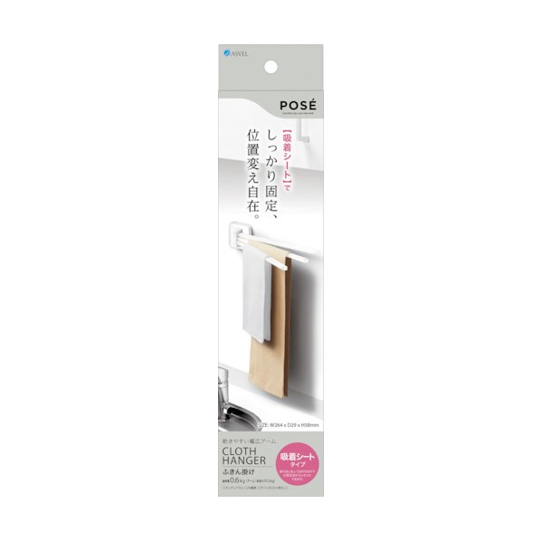 磁石のつかない場所でも、吸着シートで壁を傷つけずに好きな位置に取り付けられるふきん掛け。